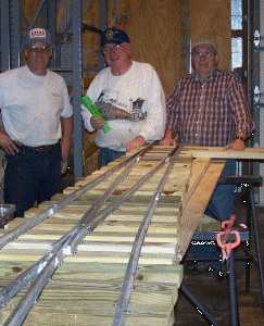 On March 11th a work group met and finished the last few switches of the production run of 106 new switches. Below is Number 106. Left to right: Pete Pedigo, Kent Bolerjack and Andy Russell. Others involved in the switch producton, but not present this day were Don Cain, Clarence Cochran, Mike Jenkins, Rick Jenkins and Bill Lesburg.